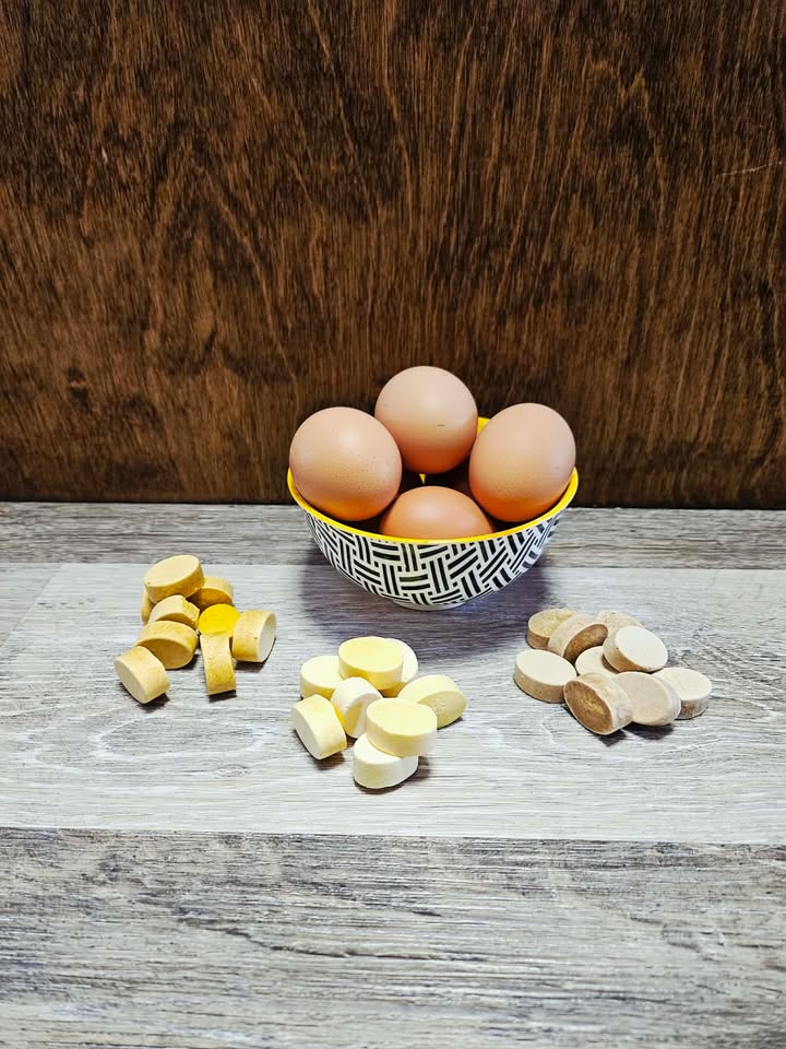 Egg Bites start with whole eggs from Saskatchewan small farms and are mixed with delicious add‑ins for a nourishing snack. Eggs offer many helpful nutrients, including amino acids that help support your dog’s protein needs. With 3 different varieties to try your pet can enjoy added flavor and nutrition.