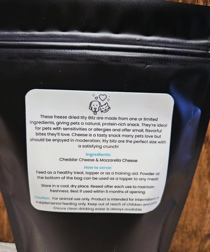 Cheese is a tasty snack many pets love but should be enjoyed in moderation; itty bitz are the perfect size with a satisfying crunch!