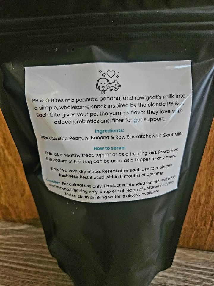 Freeze Dried treats for Dogs & Cats, these PB & G Bites mix peanuts, banana, and raw goat’s milk into a simple, wholesome snack inspired by the classic PB & J. Each bite gives your pet the yummy flavor they love with added probiotics and fiber for gut support.